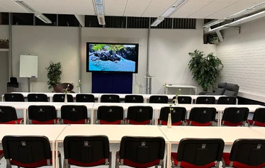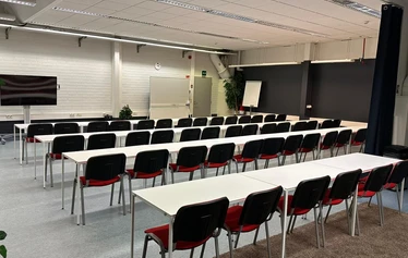 Tila soveltuu erilaisiin tilauksiin, kuten kokouksiin ja koulutuksiin 10-70 hengelle. Voit myös varata haluamasi tarjoilut tilaisuuteen lisämaksusta ja halutessasi ruokailla samalla rakennuksessa sijtaisevassa lounasravintolassa.